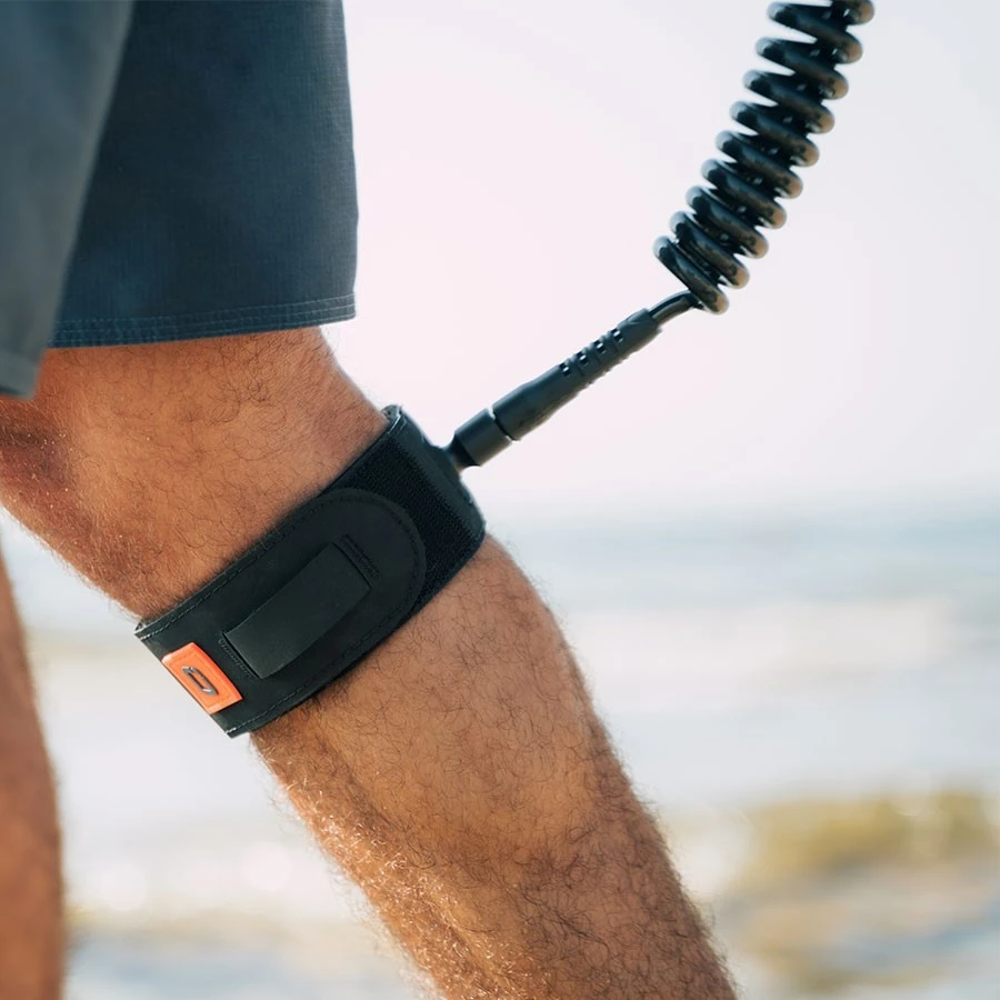 Crafted from a coiled 7mm cord, the calf attachment boardleash was designed for those riding without a harness or waistbelt and prefer more freedom of movement compared to an ankle attachment. Providing a secure connection to your foilboard, this boardleash features a comfortable EVA grip ankle cuff and a flexible leash connection with a swivel.
