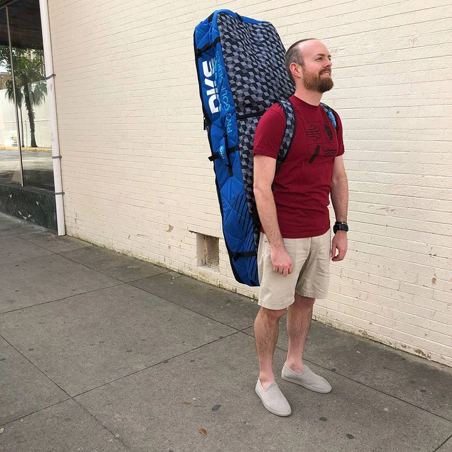The incredibly popular PKS Golf Travel Bags are back! Incredibly strong No. 10 coil zippers, a protective flap around the entire zipper, and a Cordura exterior with a tarpaulin interior make this the highest quality travel bag available. Thicker 7mm padding on all sides keeps your gear safe while tightening cinch straps on every side makes the travel bag super easy to strap down, shrink down, or carry through the airport on your next kiteboarding expedition. Rising airport fees make keeping weight down a priority and we have designed the PKS Golf Bag with this in mind. No wheels saves an average of five lbs., letting you take that extra kite.
